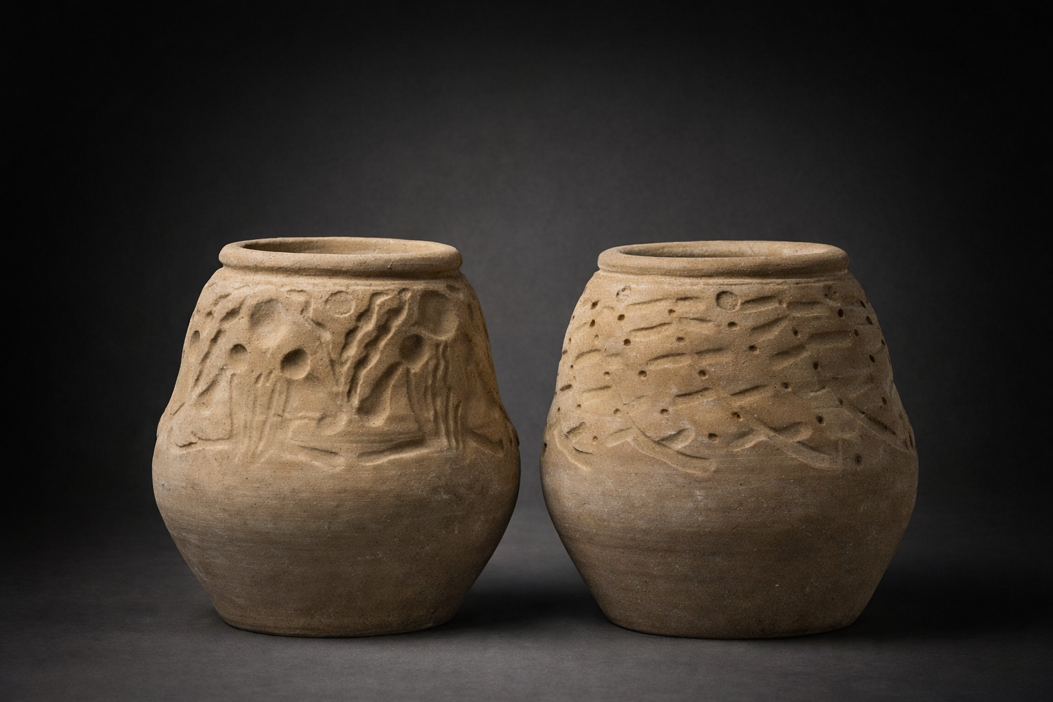 – Set om tv? handskurna f?rvaringsburkar i lera